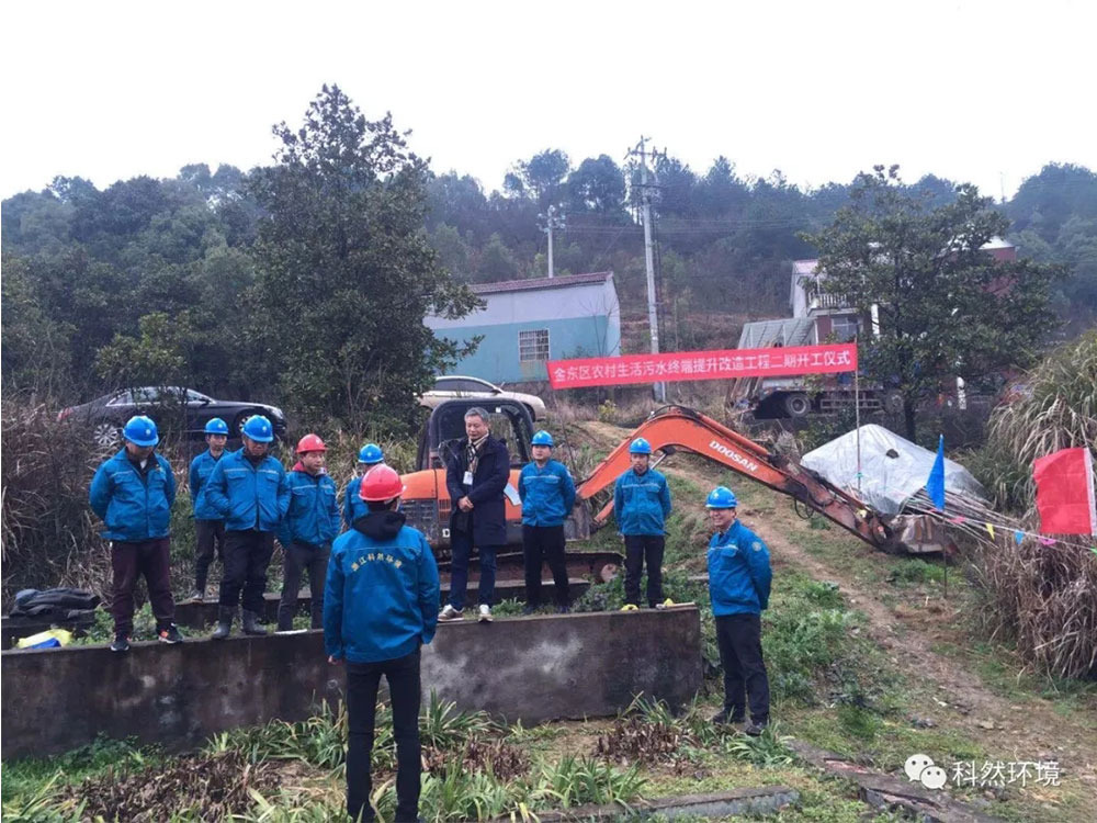 2019年的2月28日上午,由浙江科然環(huán)境科技股份有限公司承建的金東區(qū)農(nóng)村生活污水終端提升改造工程二期,在嚴(yán)塢村舉行了開工儀式。