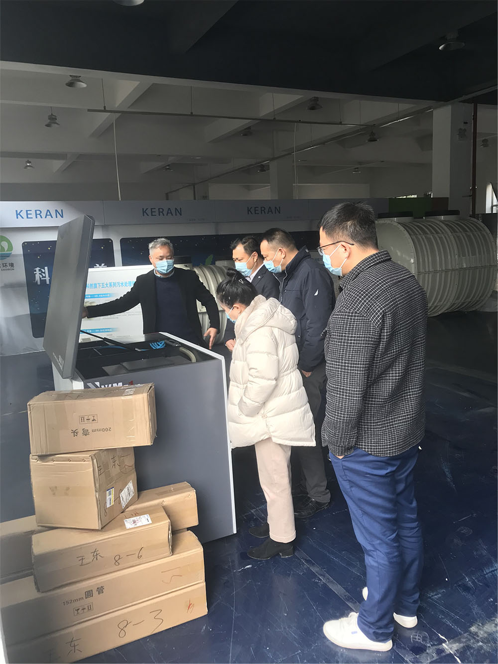 董事長黃利林與區里領導對如何更好開展農村生活污水設施建設及運維工作進行了深入探討。 董事長黃利林向領導小組一行人參觀公司的污水處理設備并介紹了生物轉盤設備,生物濾塔工藝設備,MBR膜工藝設備等對整個工藝流程進行了簡單明確的講解。